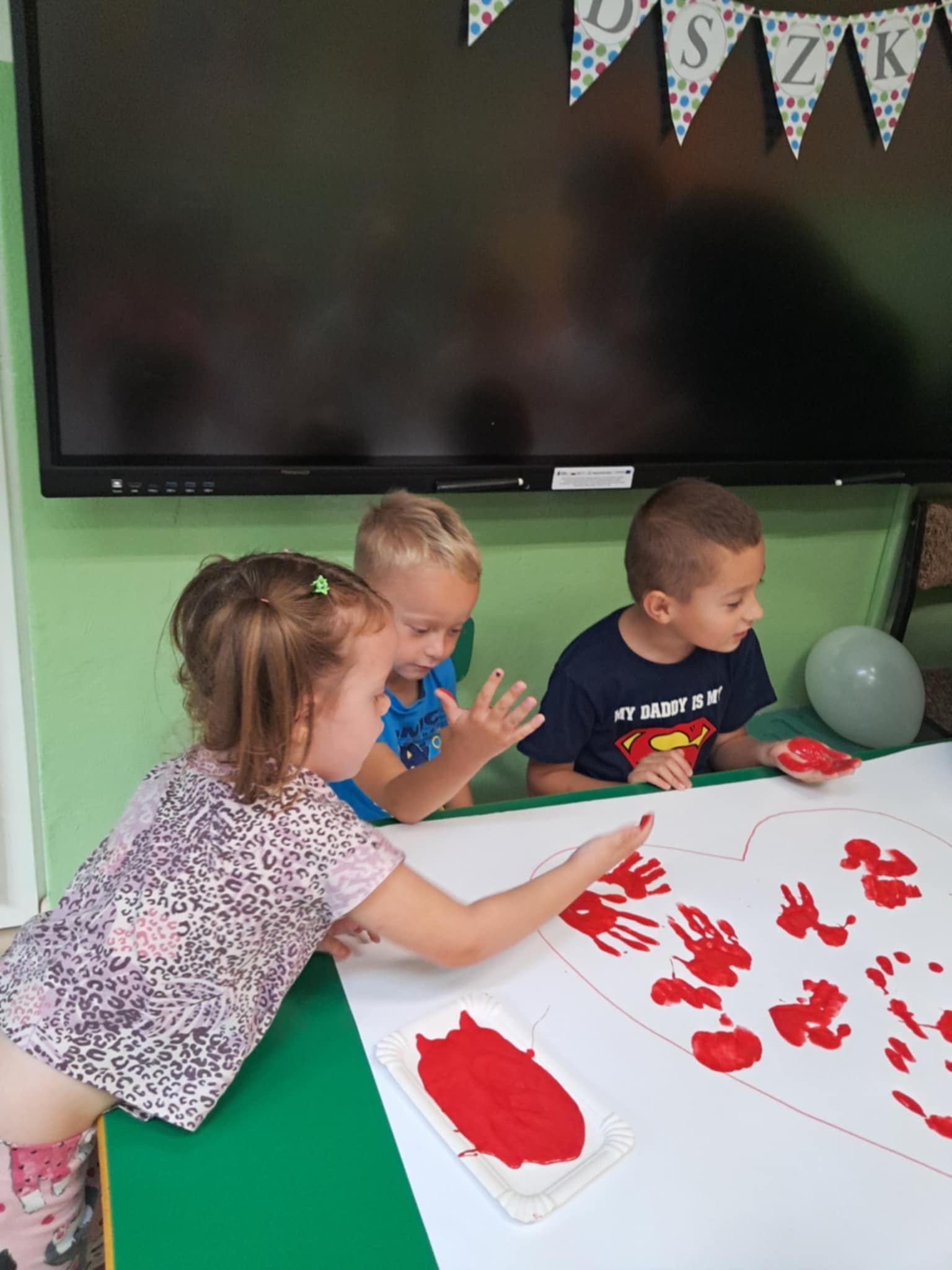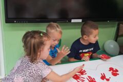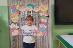 Na zakończenie dnia dzieci wykonały wspólną pracę plastyczną – wielkie serce wypełnione odbitymi dłońmi, symbolizujące przyjaźń i jedność grupy. Nie zabrakło także pamiątkowej sesji zdjęciowej w fotobudce, która uwieczniła ten wyjątkowy dzień.