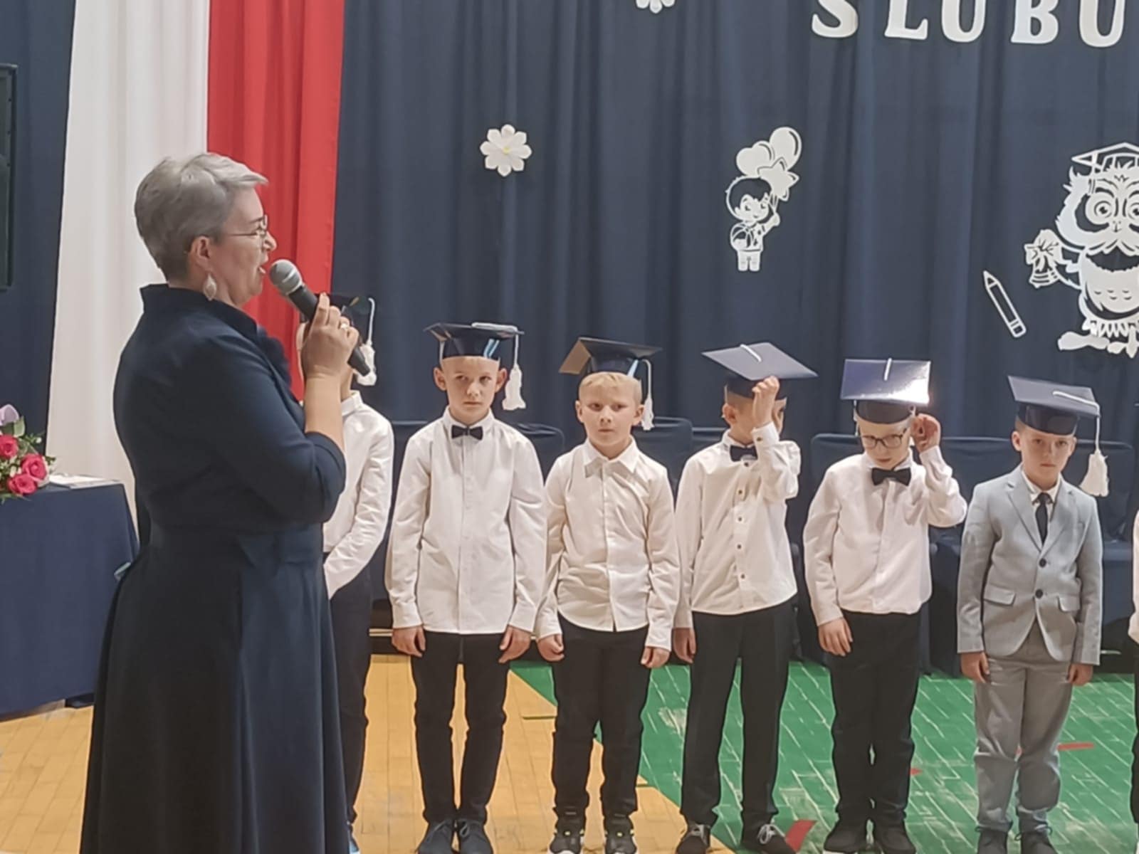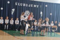 Podczas uroczystości swoje święto mieli również uczniowie klasy I – był to dla nich wyjątkowy i ważny dzień, ponieważ zostali uroczyście włączeni w poczet uczniów szkoły.