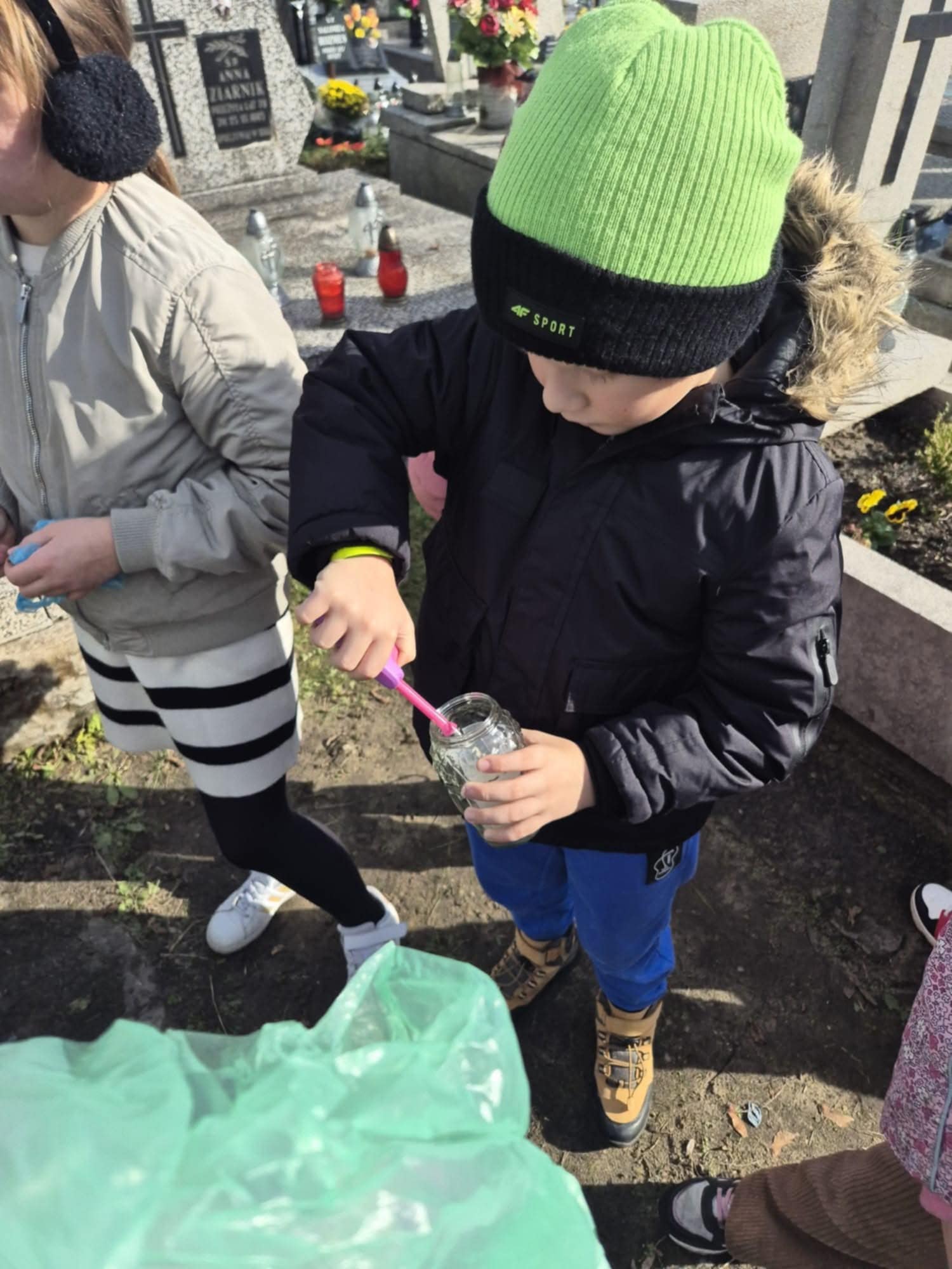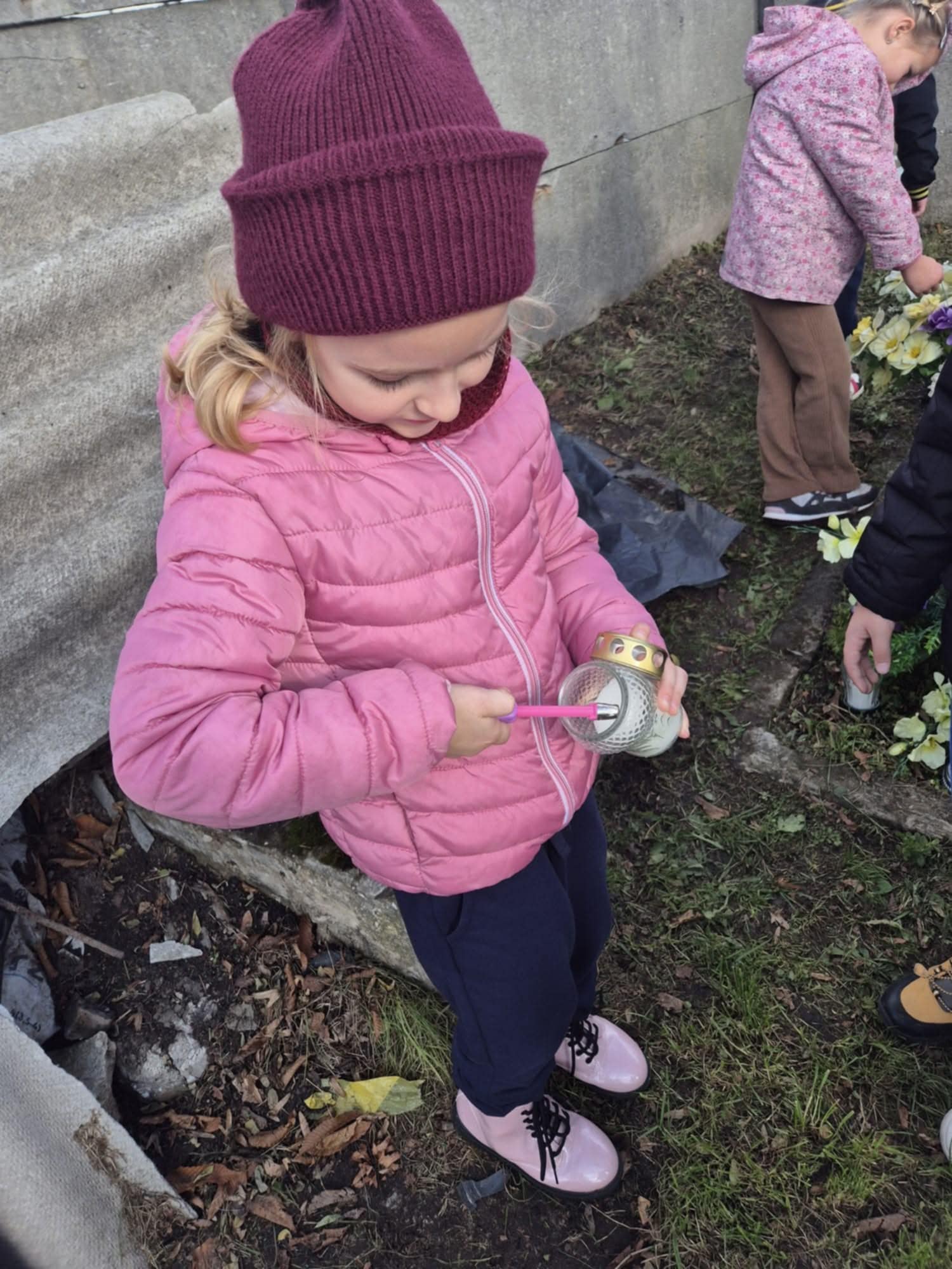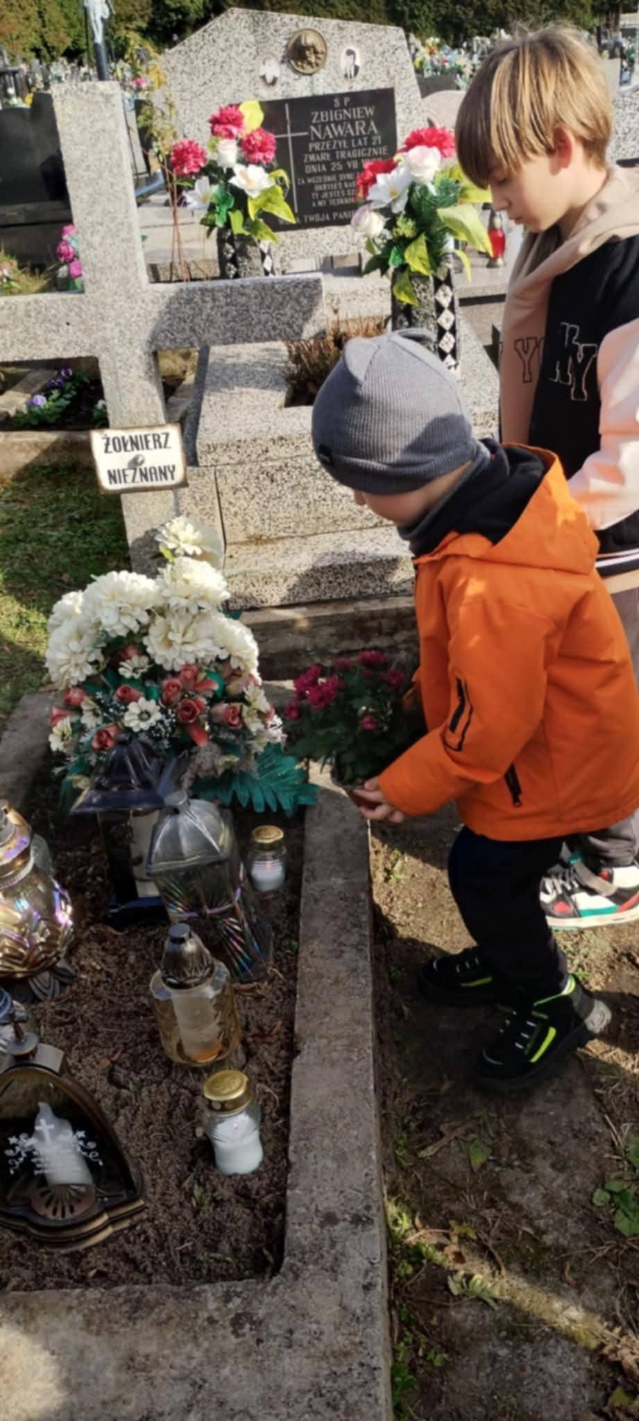 Tuż przed dniem Wszystkich Świętych uczniowie naszej szkoły oraz przedszkolaki udali się na cmentarz, aby zadbać o groby, o które nie ma już kto się zatroszczyć. Wspólnie posprzątali nagrobki, zapalili znicze i chwilą ciszy uczcili pamięć zmarłych. Odwiedzili również groby Nieznanego Żołnierza, składając hołd tym, którzy oddali życie za naszą ojczyznę. To piękna lekcja szacunku, pamięci i wspólnoty ![]()