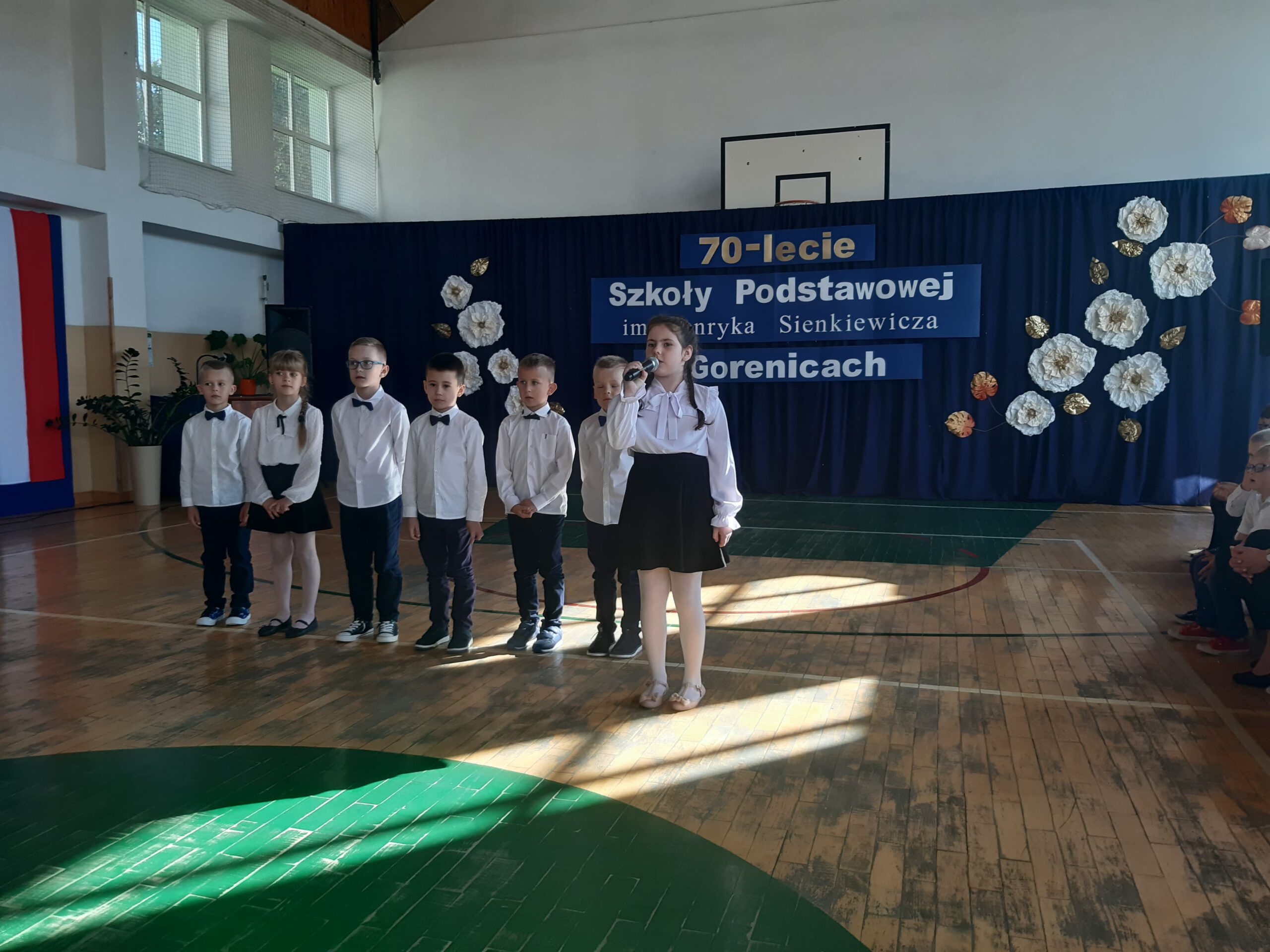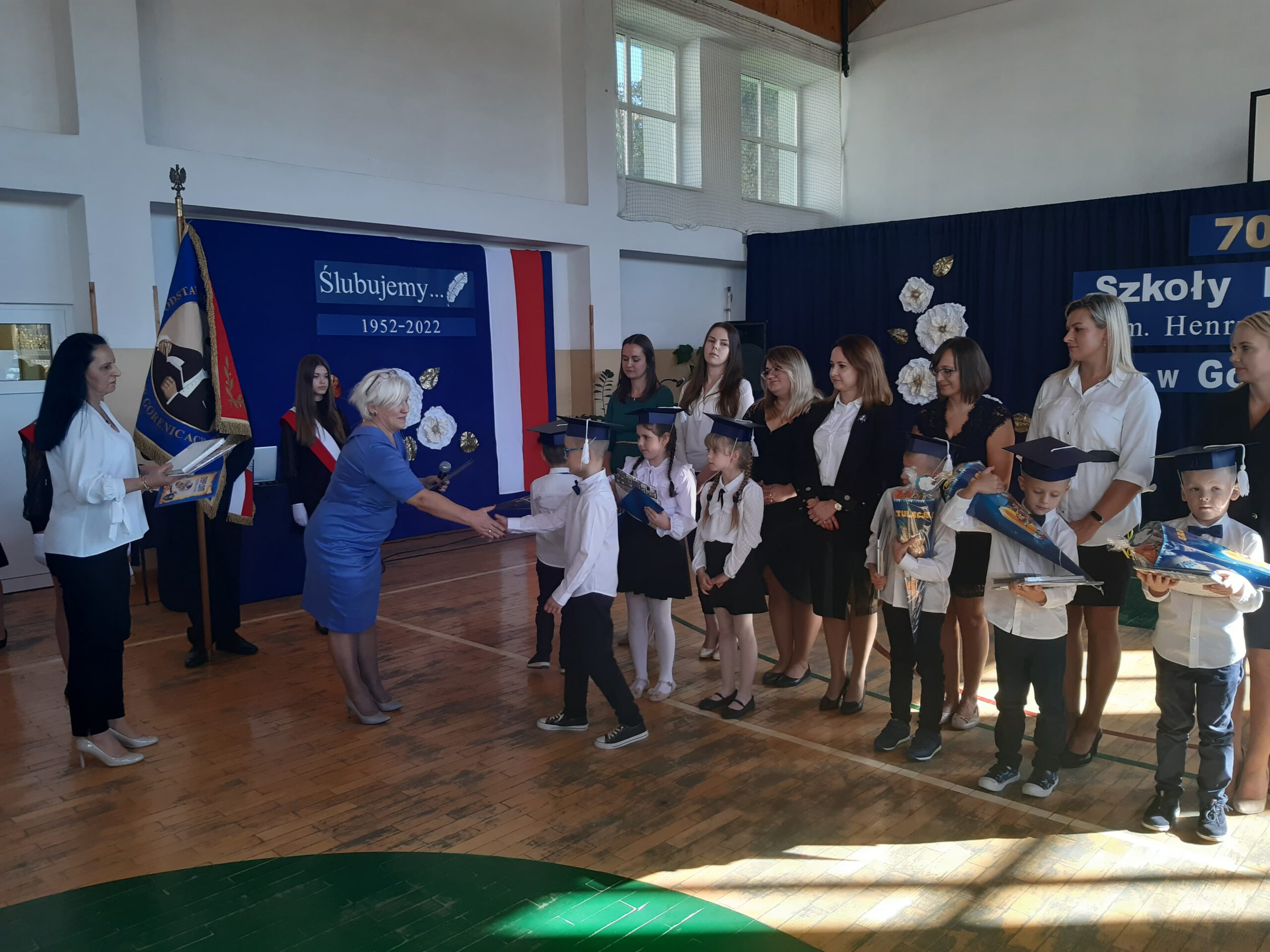 Pani dyrektor Ewa Karłowicz powitała na dzisiejszej uroczystości Burmistrza Miasta i Gminy Olkusz Pana Romana Piaśnika, Wiceprzewodniczącego Rady Miejskiej Pana Jerzego Kwaśniewskiego, Dyrektora SZE Panią Izabelę Mosur, księdza proboszcza Wiesława Gibasa, Prezesa OSP Gorenice Pana Stanisława Kurkowskiego oraz Prezesa LKS „ Leśnik” w osobie Pana Piotra Ziarnika , Pana Jacka Majcherkiewicza- poetę, malarza, emerytowanych nauczycieli szkoły w tym: Panią Zofię Lipę, Panią Grażynę Piątek, Panią Mirosławę Ziarnik, Radę Rodziców, Rodziców uczniów klasy pierwszej, grono pedagogiczne, pracowników administracji i obsługi i wszystkich uczniów.