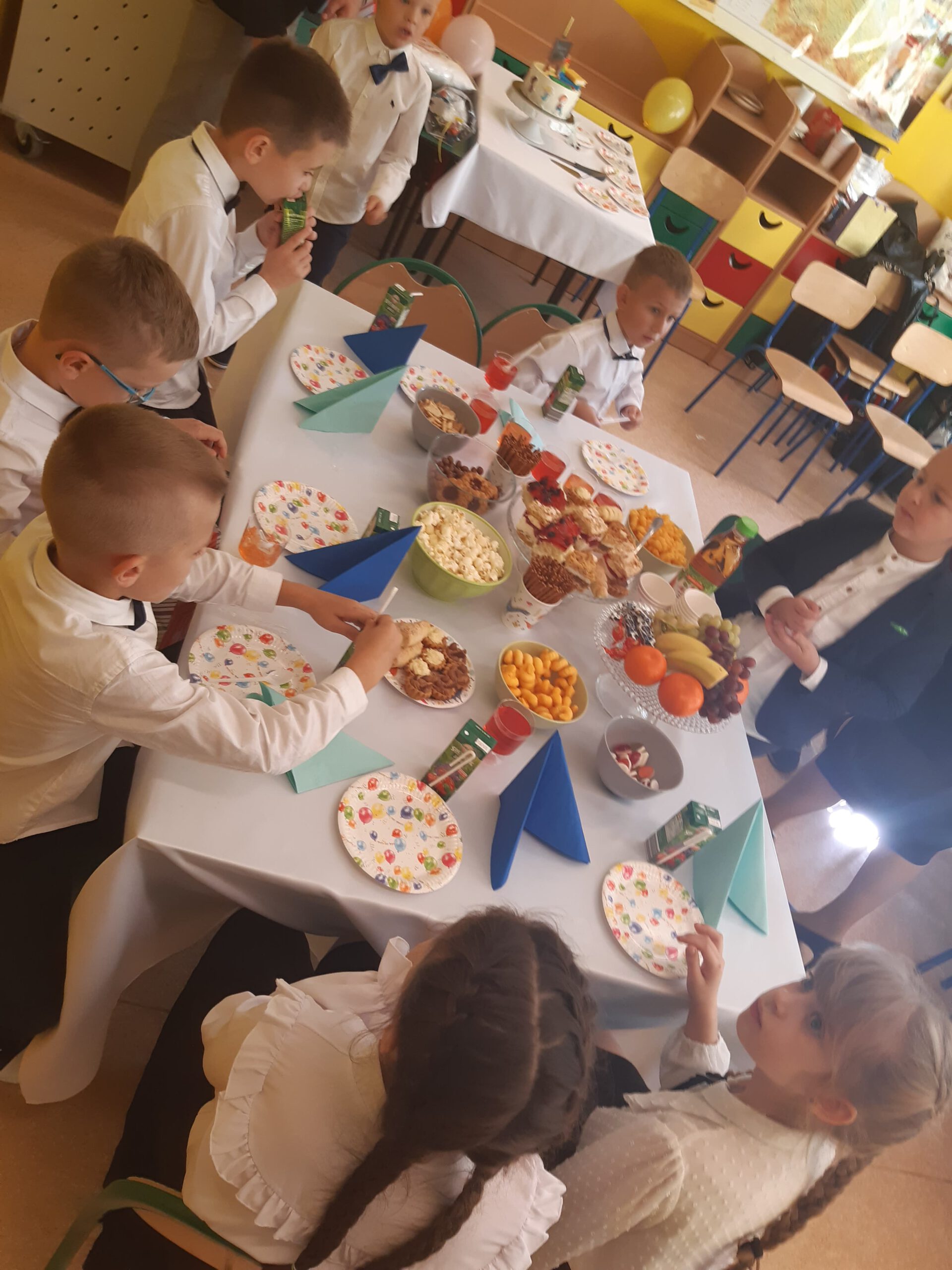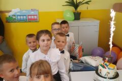 Po pasowaniu była chwila na słodki poczęstunek, za który dziękujemy Radzie Rodziców oraz wręczenie prezentów od kolegów i koleżanek ze starszych klas.