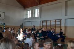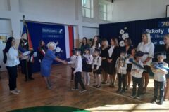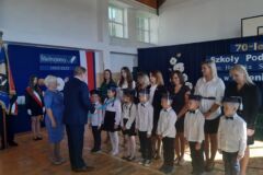 Pan Burmistrz MiG Olkusz Roman Piaśnik podziękował wszystkim, którzy całe swoje serce wkładają w edukację i wychowanie najmłodszego pokolenia, pogratulował dyrekcji, znakomitym pedagogom i absolwentom tak wspaniałych osiągnięć, uczniom życzył ciekawości i pasji w odkrywaniu otaczającego ich świata, a Pierwszoklasistom, dziś przyjmowanym w poczet uczniów tej szkoły, życzył aby zdobyta wiedza pozwoliła na spełnienie najskrytszych marzeń.