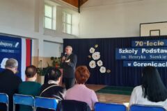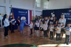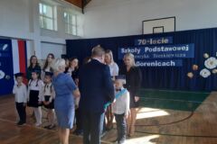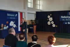 Pani dyrektor w kilku słowach przypomniała historię naszej szkoły, przytaczając fragmenty kroniki, a pani Zofia Lipa, emerytowana nauczycielka w wzruszających słowach przywołała szkolne wspomnienia.
