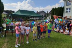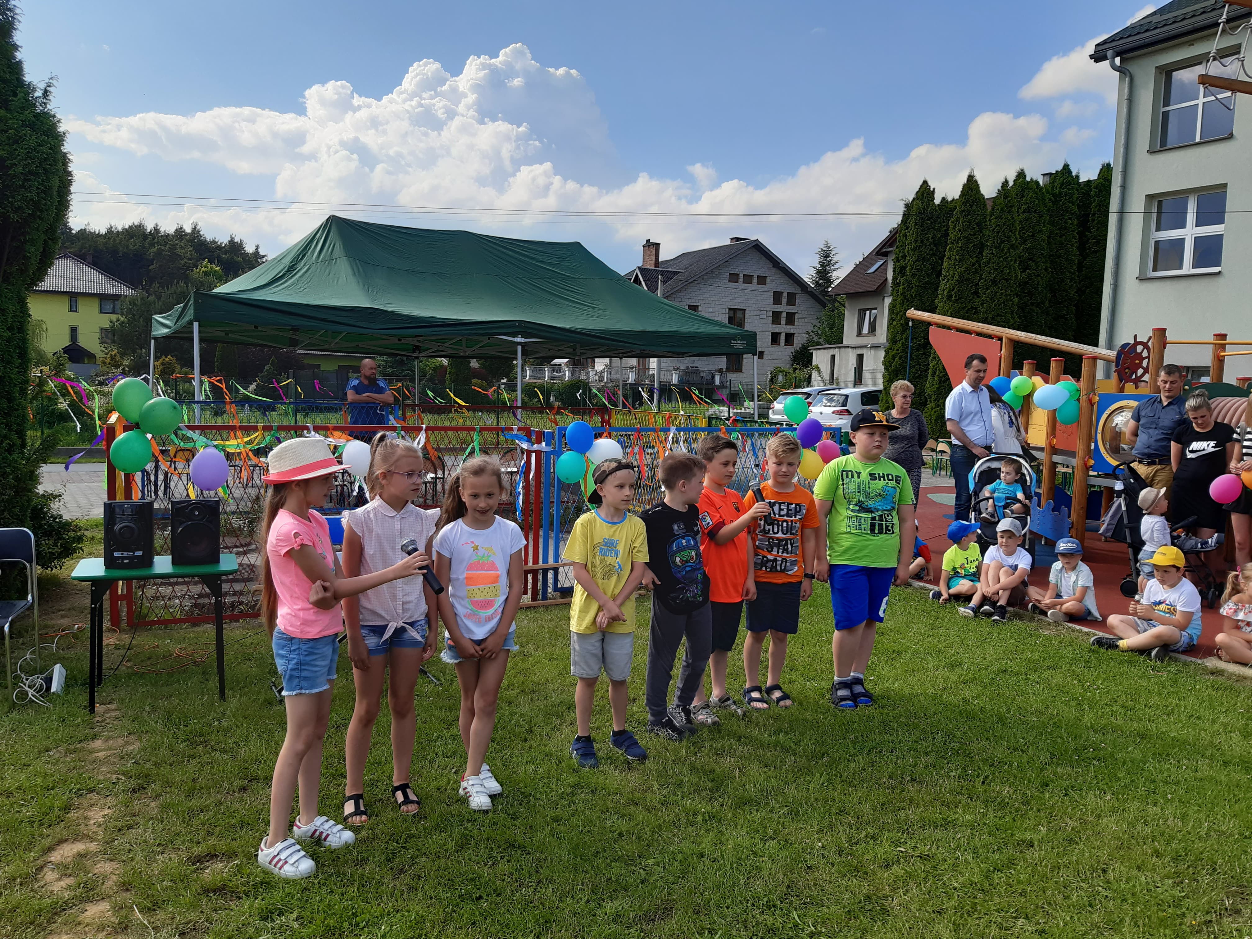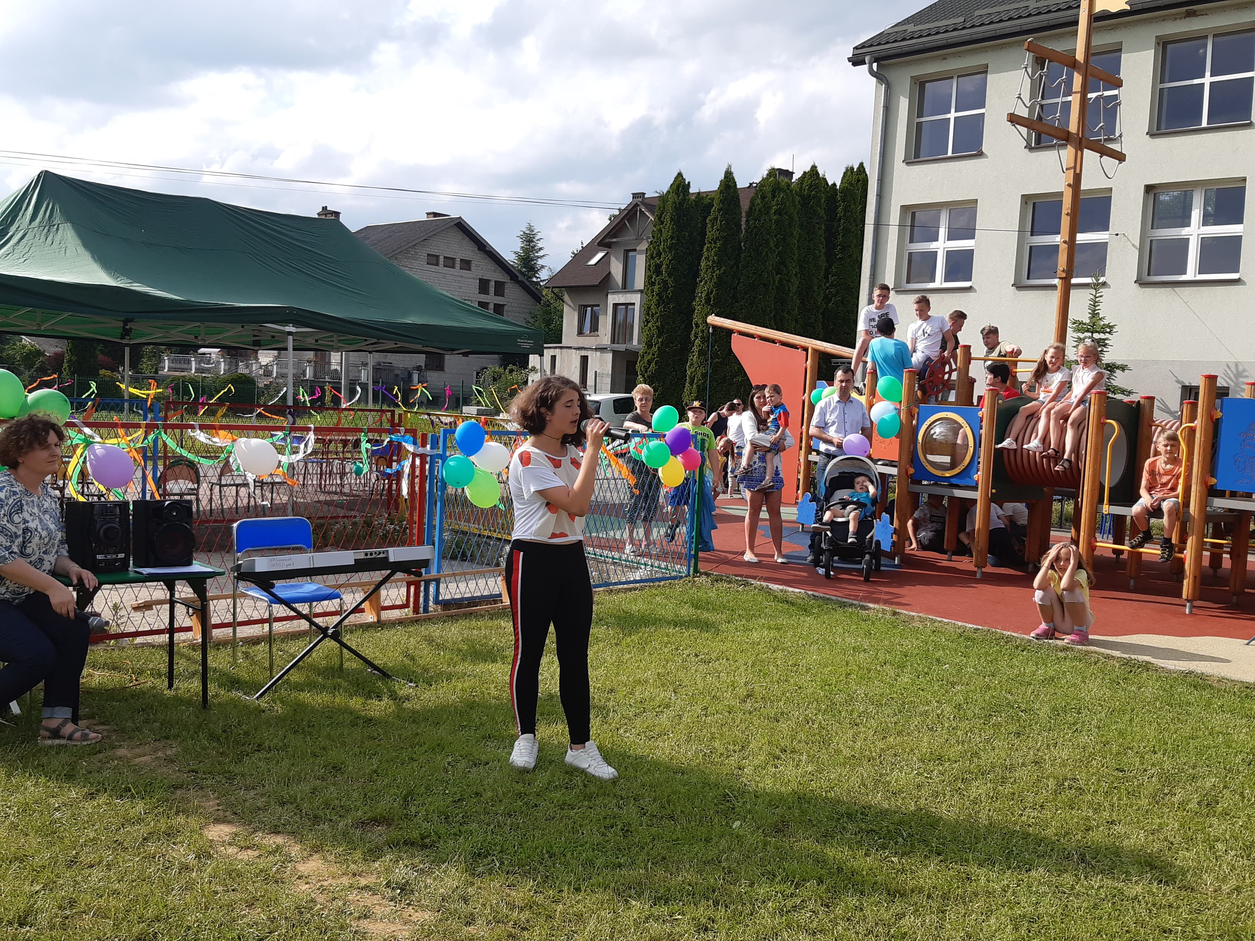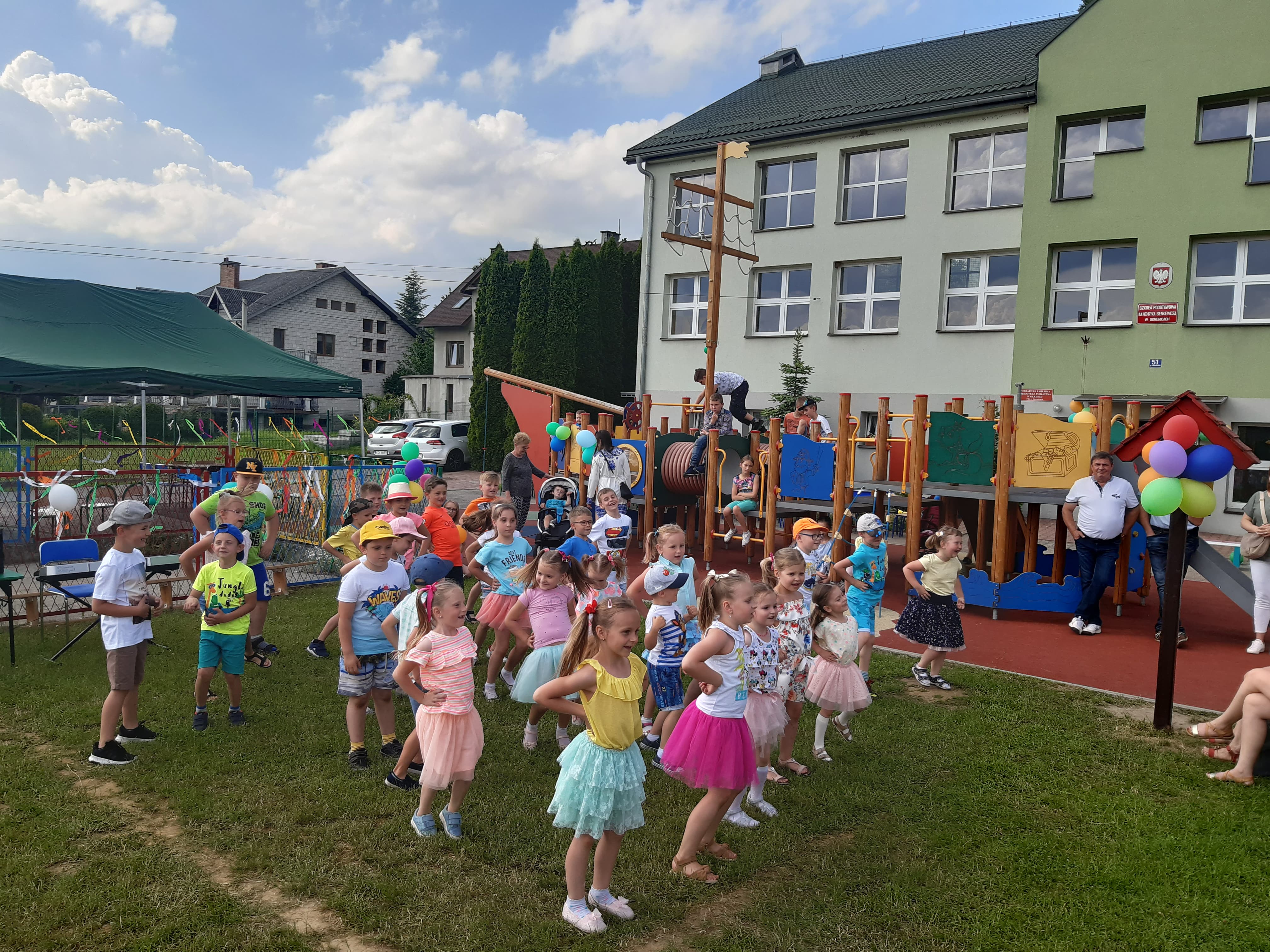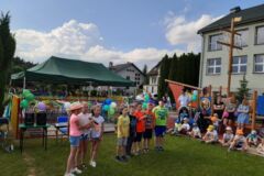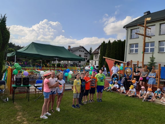 6 czerwca 2019 roku przy pięknej, słonecznej pogodzie w ramach Święta Szkoły odbył się Piknik rodzinny w naszej szkole .Dzieci z rodzicami uczestniczyli w wielu przygotowanych na ten dzień atrakcjach. Imprezę rozpoczęło wspólne odśpiewanie prze uczniów pieśni szkoły. Najmłodsi uczniowie naszej szkoły zaprezentowali piosenki oraz urocze tańce, uczennice: Milena Gut z klasy IV oraz Marysia Stachurska z klasy VI zachwyciły wszystkich pięknym wykonaniem piosenek Następnie dzieci zaprosiły swoich rodziców do wspólnego tańca.