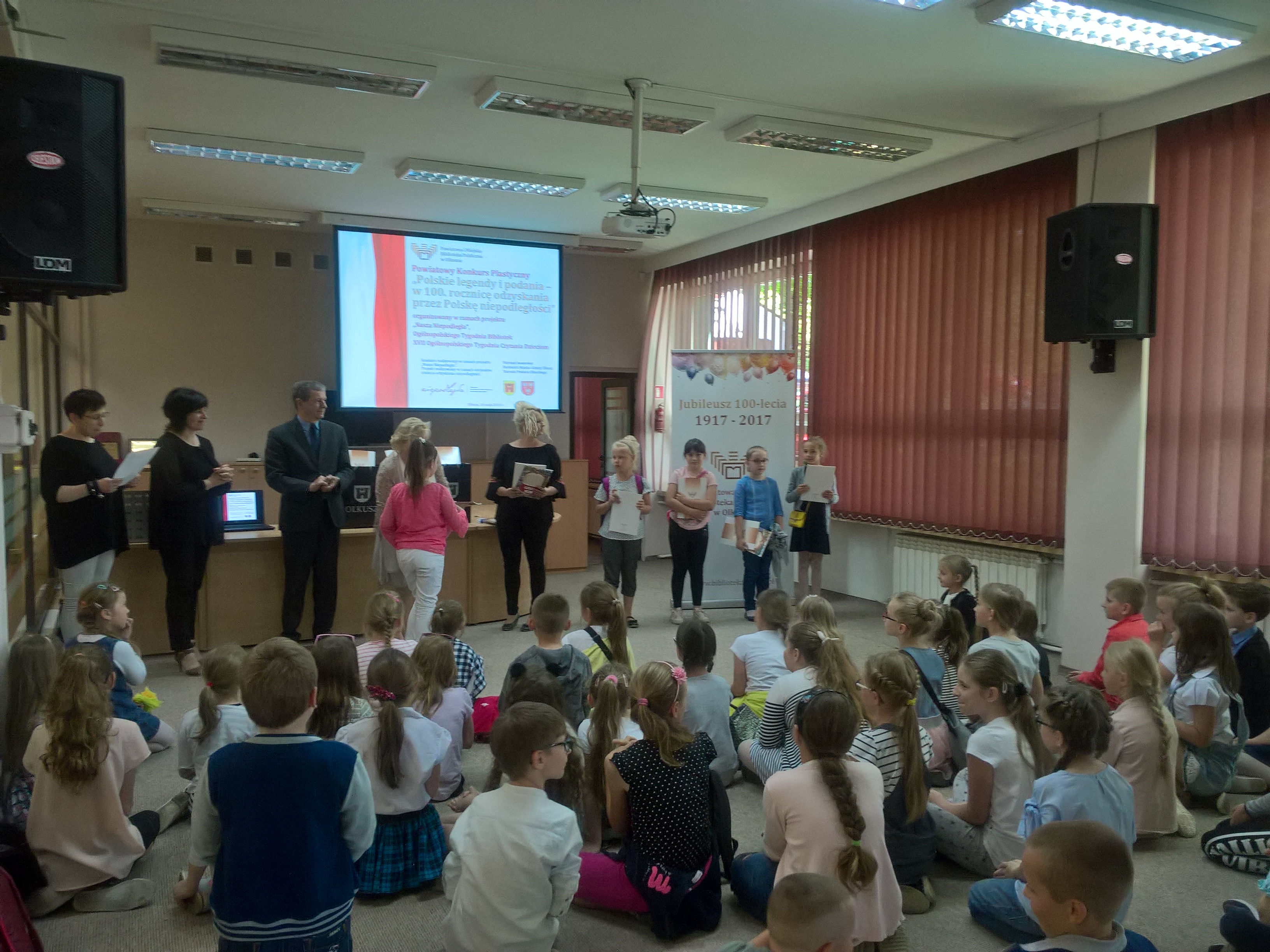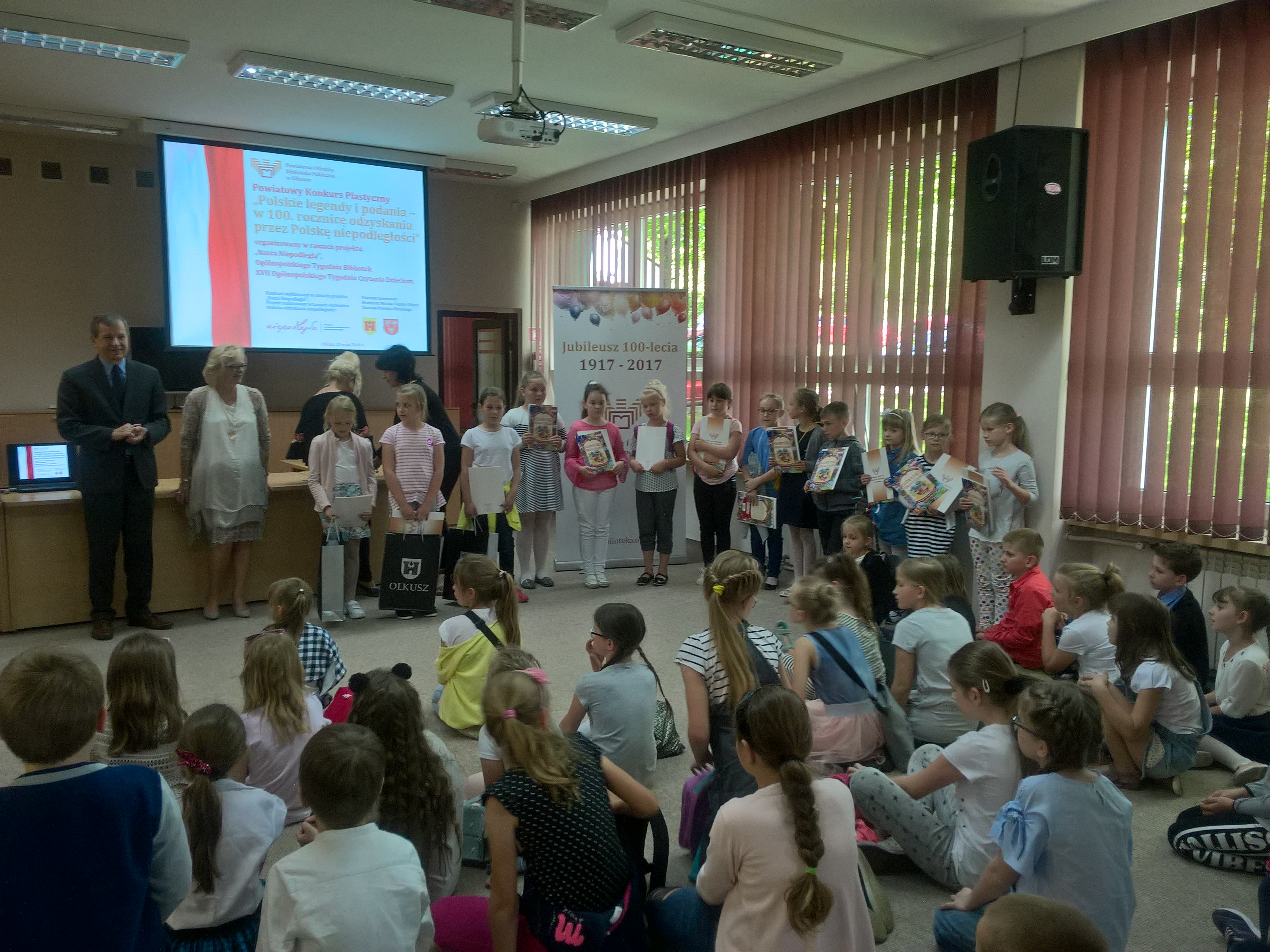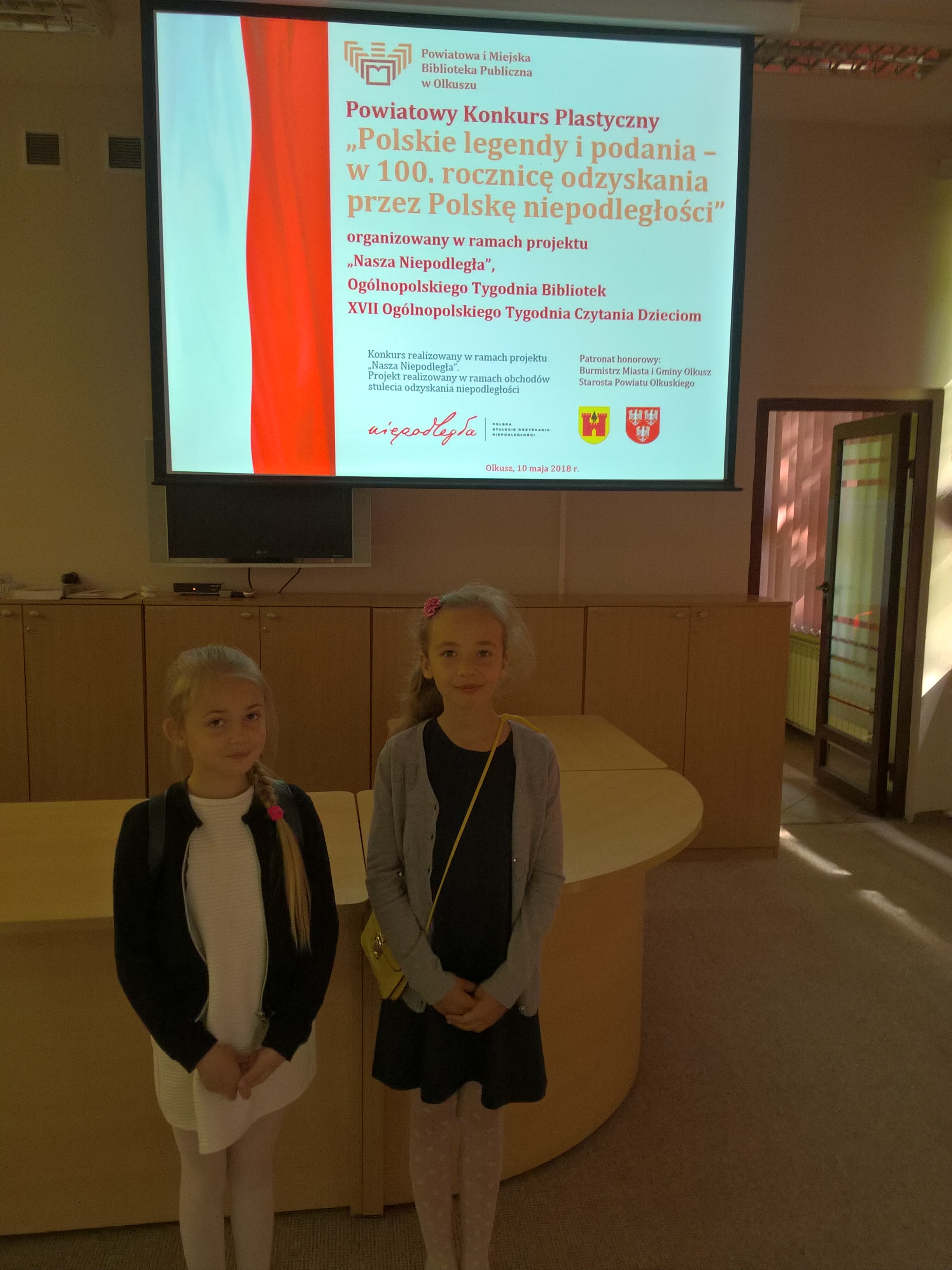 Miło nam poinformować, że dzisiaj uczennica klasy III naszej szkoły Aleksandra Tylnicka otrzymała wyróżnienie w Powiatowym Konkursie Plastycznym” Polskie legendy i podania” – w 100. rocznicę odzyskania przez Polskę niepodległości Wzięła w nim również udział uczennica klasy I Amelia Janczyk. Dzieci z Powiatu Olkuskiego pastelami przedstawiały legendy polskie,następnie był smakowity poczęstunek. Dzieci uczestniczyły w zabawnym przedstawieniu o wędrownym Władku i Felku. Jury wybrało najlepsze prace , a zastępca starosty Jan Orkisz i zastępca burmistrza Miasta i Gminy Olkusz Pani Bożena Krok wręczyli nagrody i dyplomy. Wszyscy uczestnicy otrzymali pamiątkowe ołówki , a na zakończenie wykonali wspólne zdjęcie. GRATULUJEMU udziału i sukcesu ! Do zobaczenia za rok!