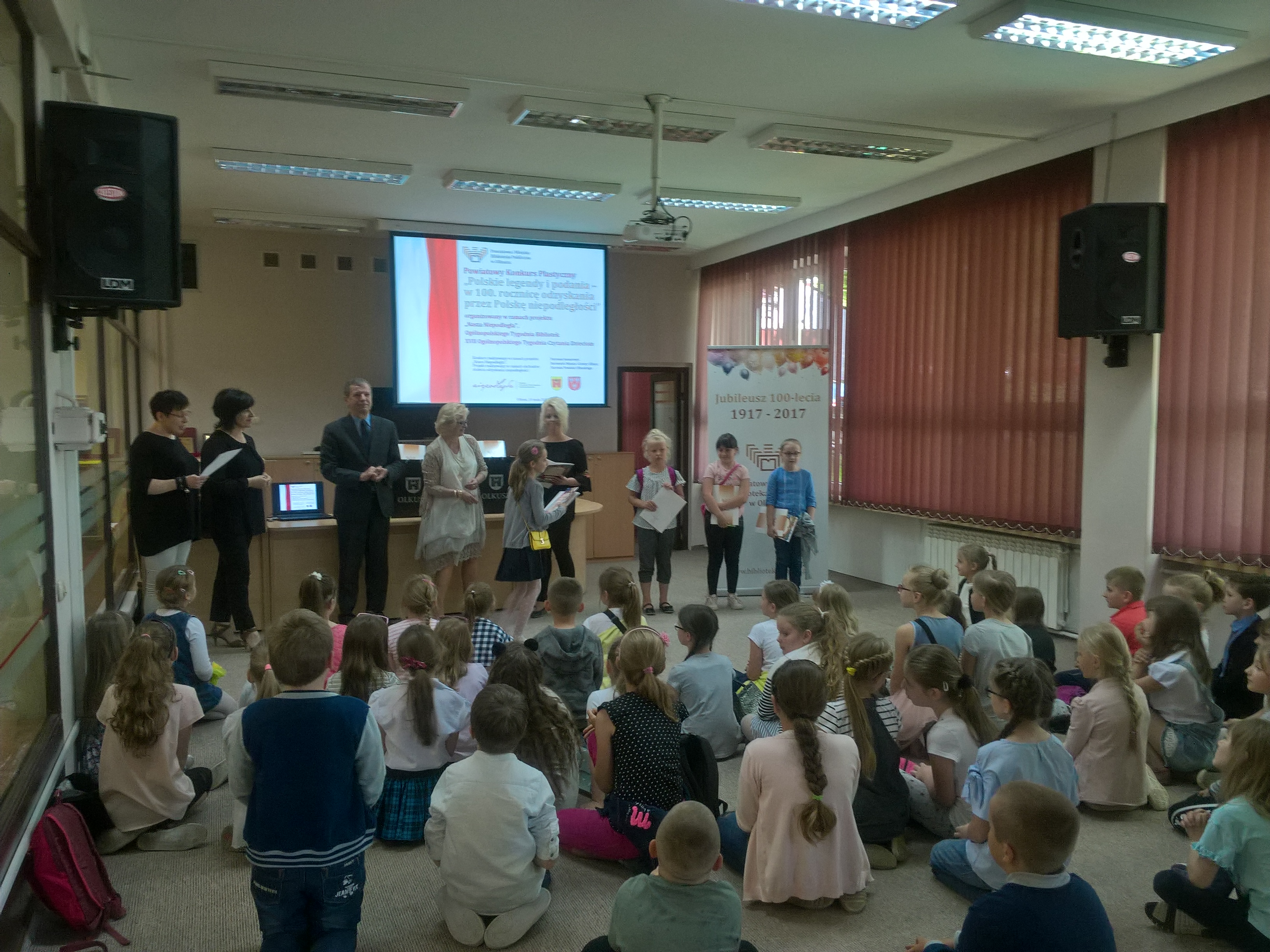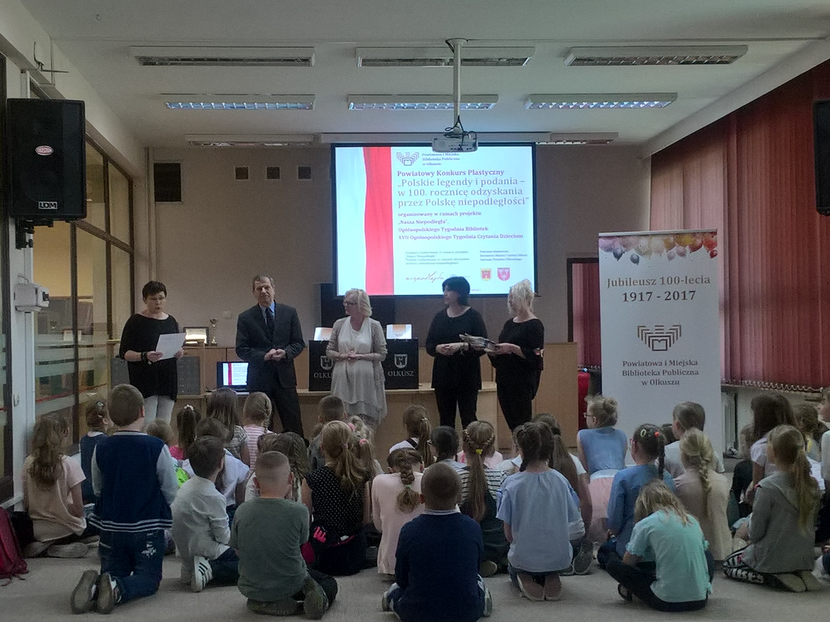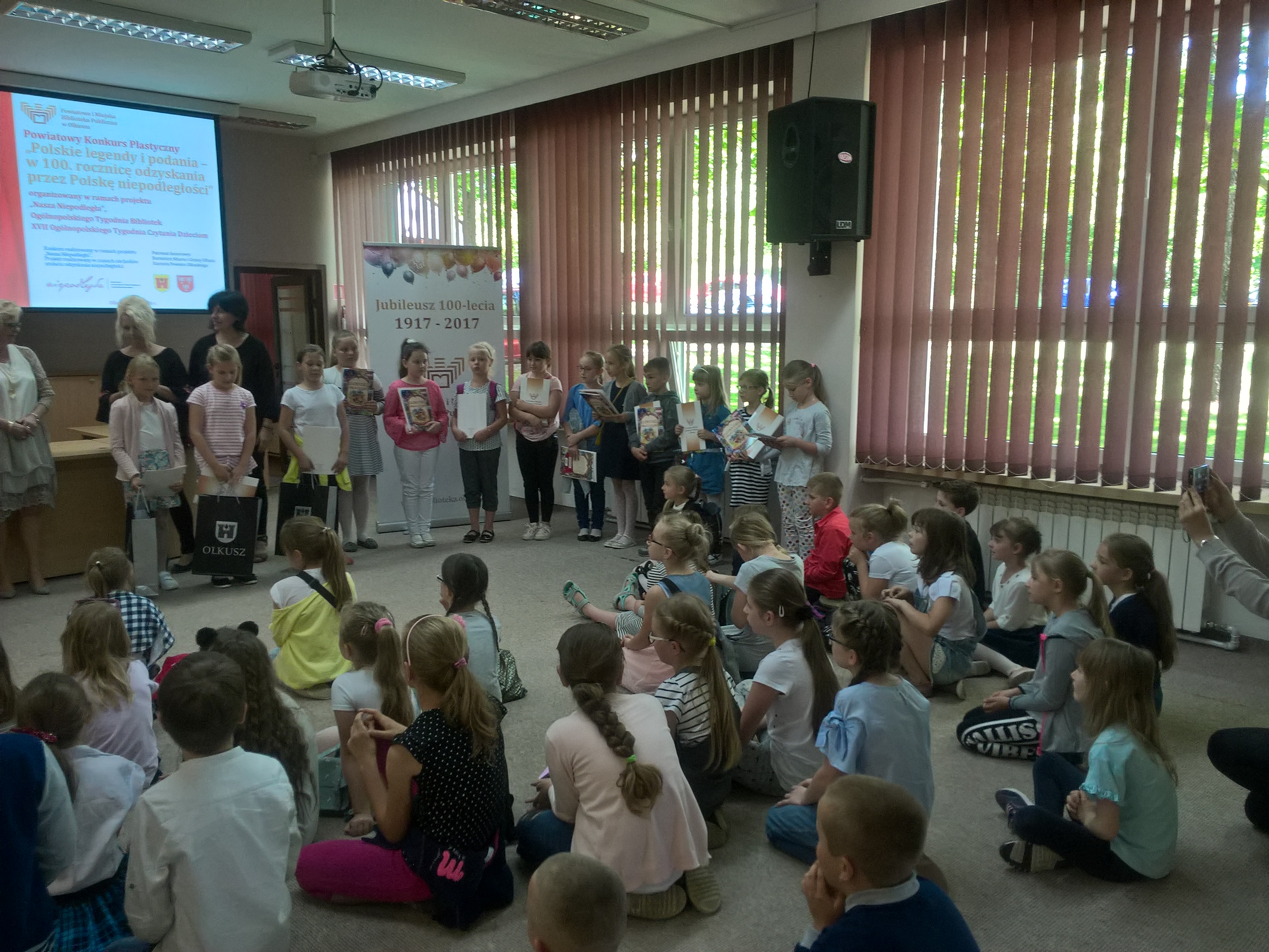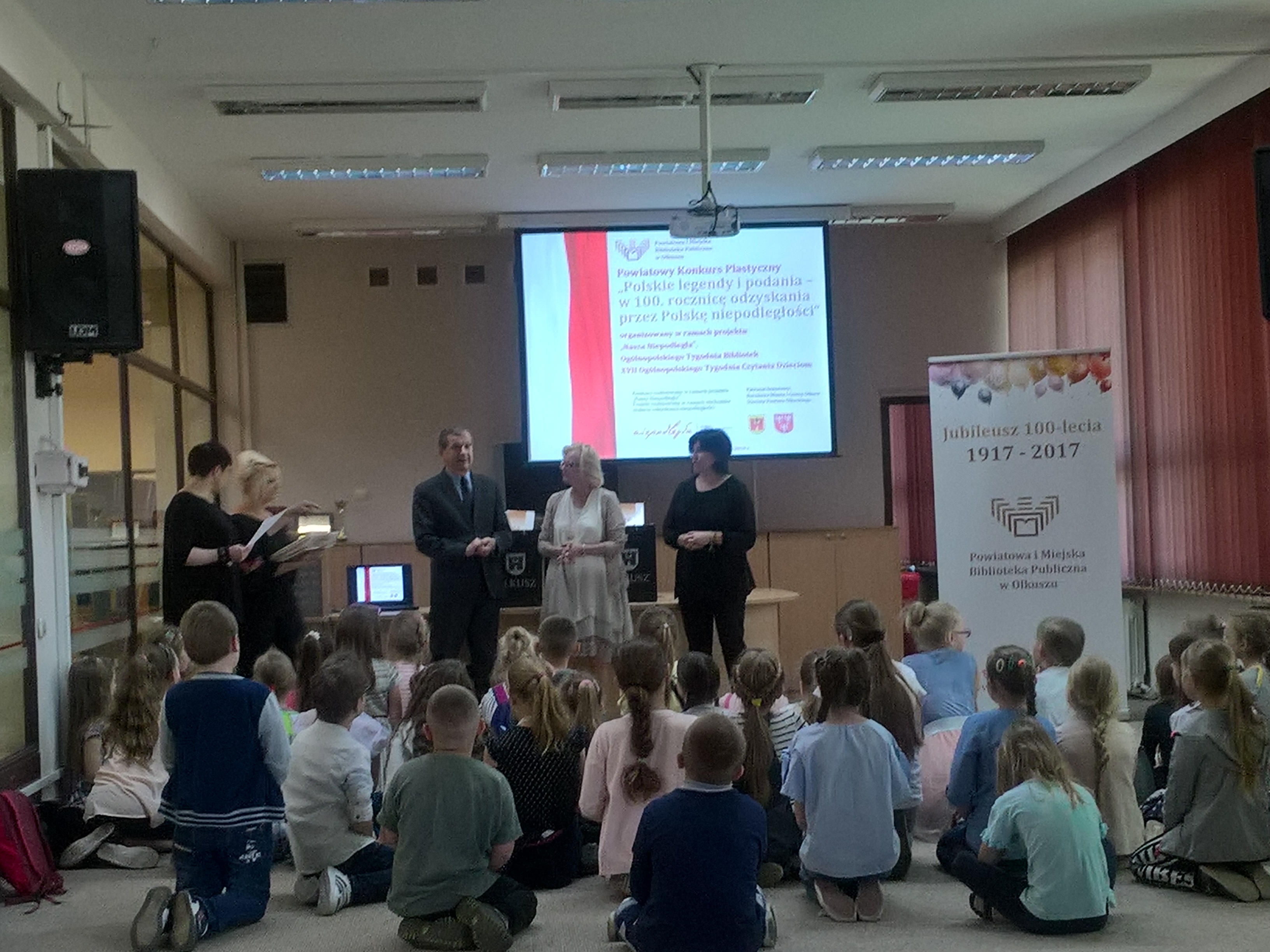 Miło nam poinformować, że dzisiaj uczennica klasy III naszej szkoły Aleksandra Tylnicka otrzymała wyróżnienie w Powiatowym Konkursie Plastycznym” Polskie legendy i podania” – w 100. rocznicę odzyskania przez Polskę niepodległości Wzięła w nim również udział uczennica klasy I Amelia Janczyk. Dzieci z Powiatu Olkuskiego pastelami przedstawiały legendy polskie,następnie był smakowity poczęstunek. Dzieci uczestniczyły w zabawnym przedstawieniu o wędrownym Władku i Felku. Jury wybrało najlepsze prace , a zastępca starosty Jan Orkisz i zastępca burmistrza Miasta i Gminy Olkusz Pani Bożena Krok wręczyli nagrody i dyplomy. Wszyscy uczestnicy otrzymali pamiątkowe ołówki , a na zakończenie wykonali wspólne zdjęcie. GRATULUJEMU udziału i sukcesu ! Do zobaczenia za rok!