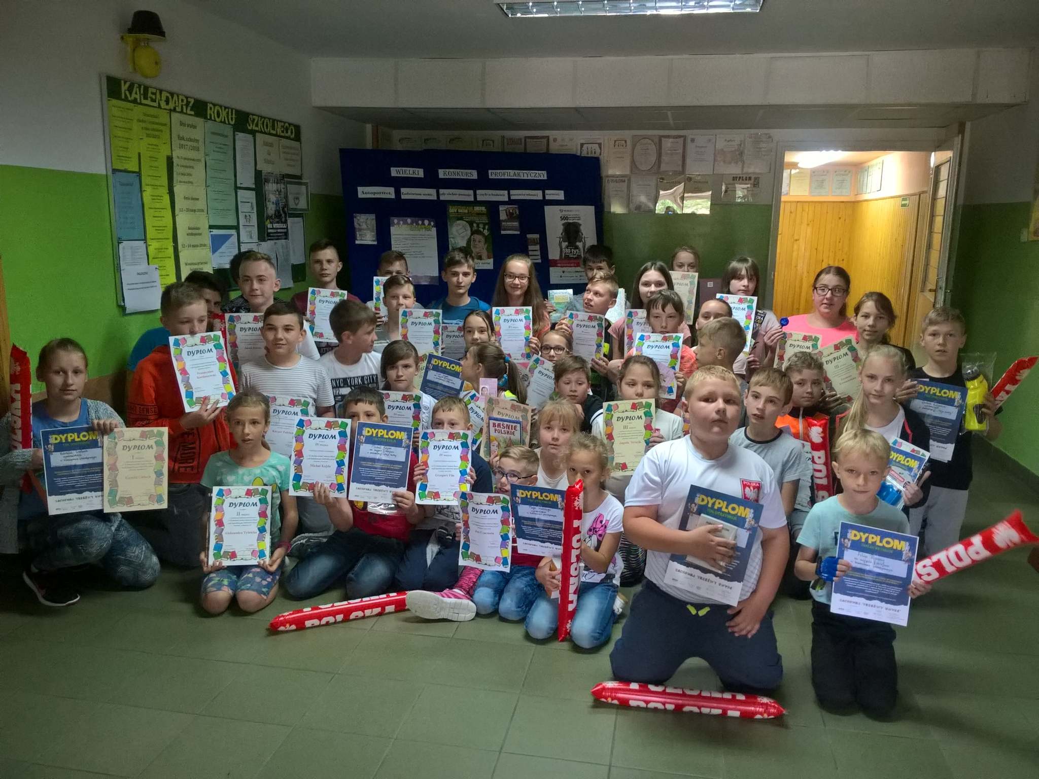 15 czerwca 2018 br. podczas apelu podsumowującego kolejną edycję konkursu profilaktycznego i czytelniczego pani dyrektor mgr Ewa Karłowicz,pani mgr Agnieszka Wardęga oaz pani mgr Marta Skalniak ogłosiły wyniki konkursów.Zostały wręczone dyplomy , nagrody .Wszyscy laureaci wykonali wspólnie pamiątkowe zdjęcie.