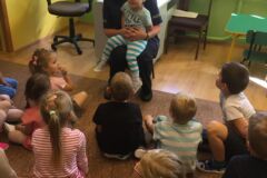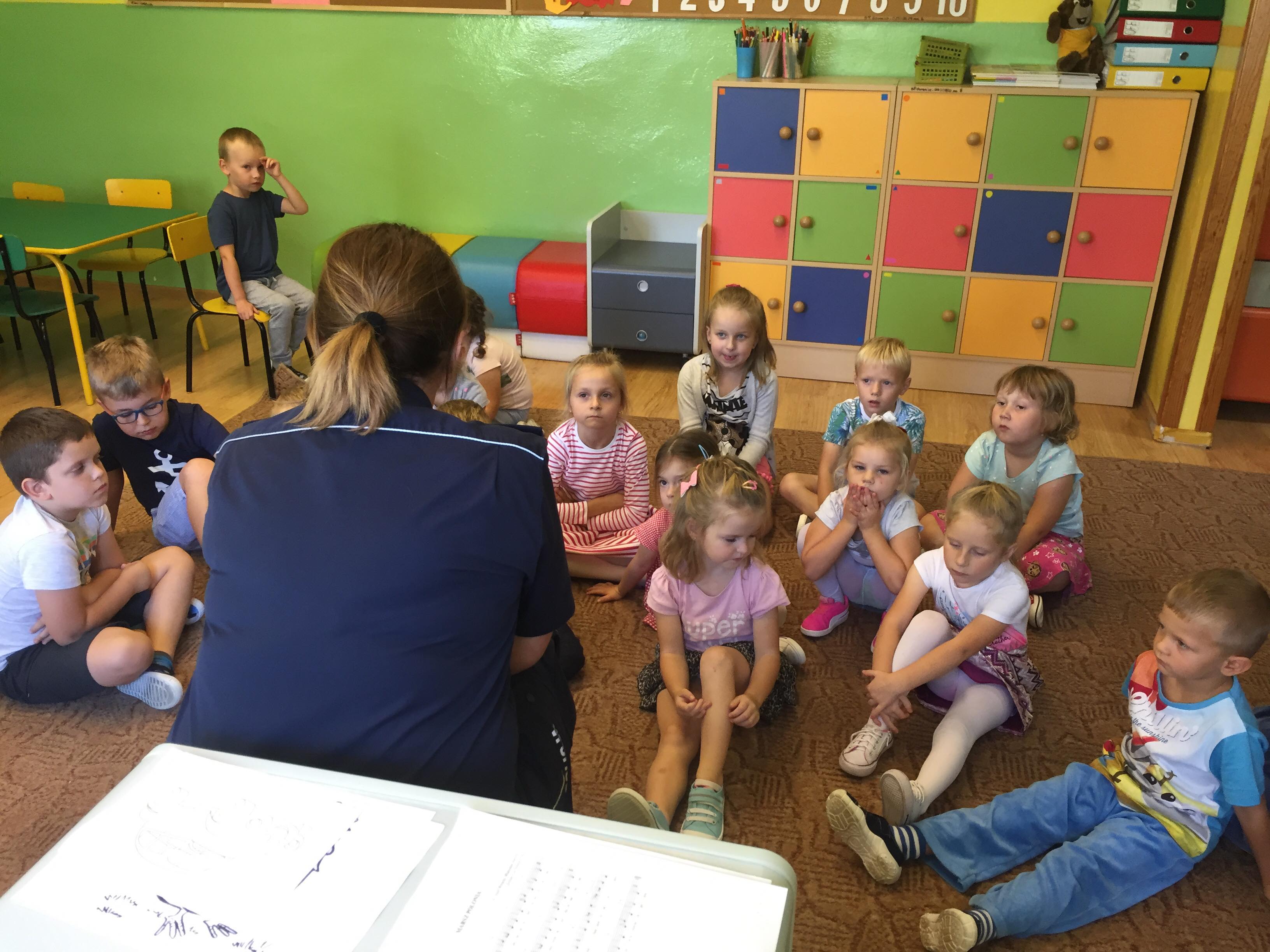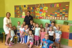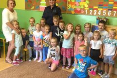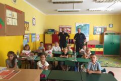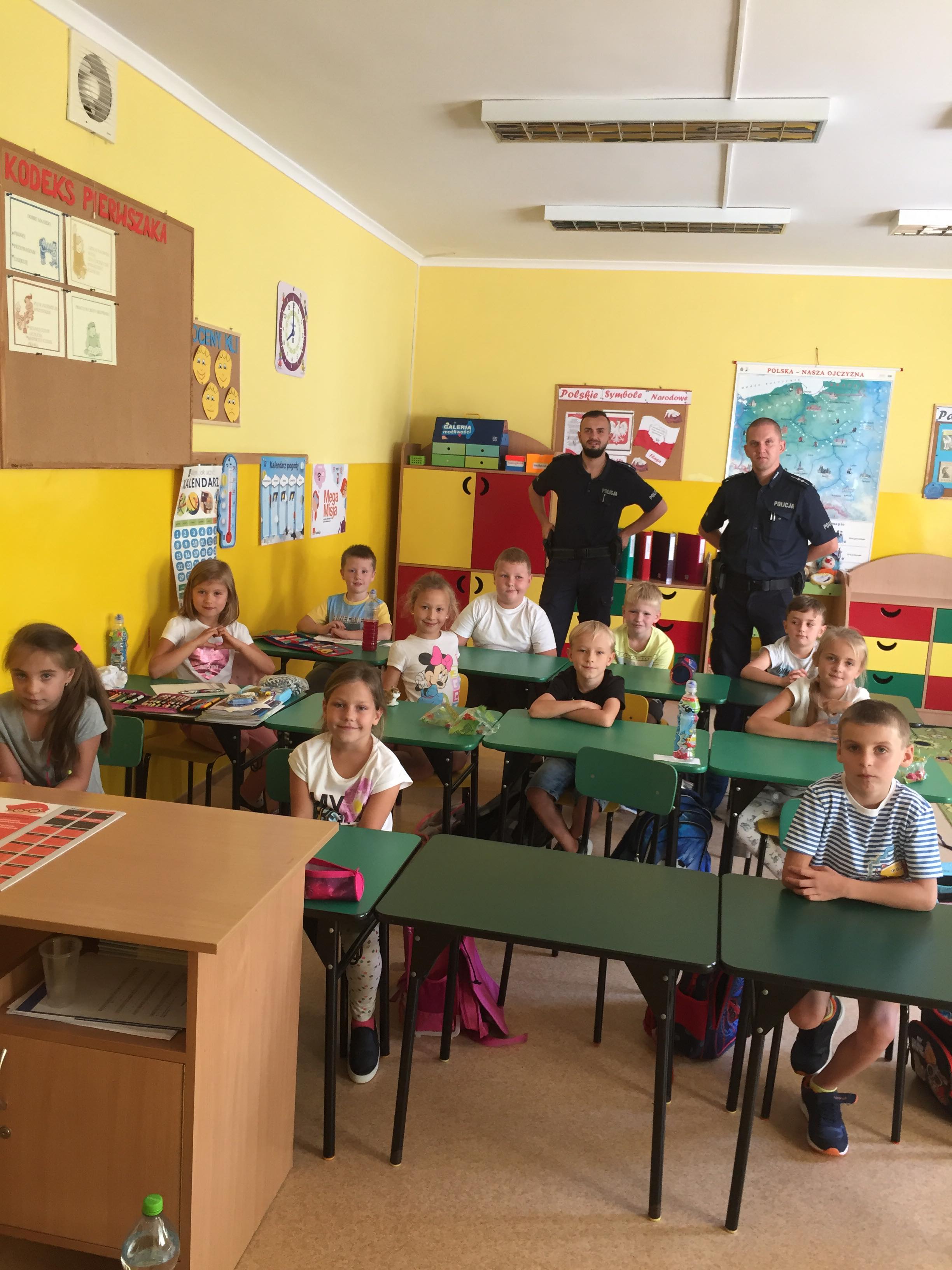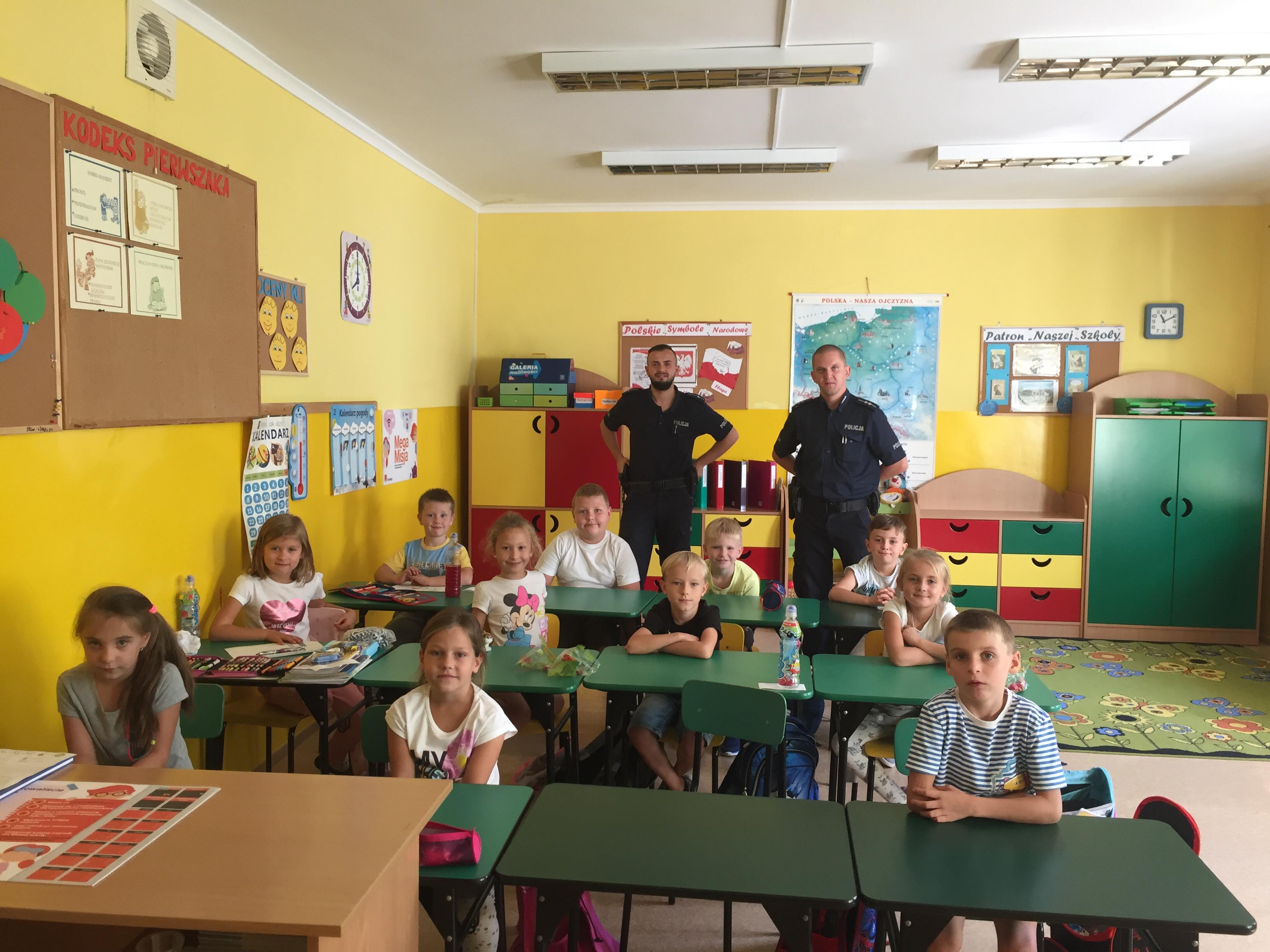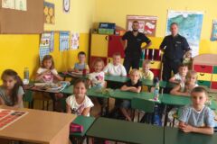 W dniu 19 września nasza szkołę odwiedzili policjanci z Komendy Powiatowej Policji w Olkuszu. Policjanci podczas spotkania przekazali uczniom klasy I i II oraz dzieciom oddziału przedszkolnego zasady bezpiecznego poruszania się po drodze; zasady prawidłowego przechodzenia przez drogę oraz poruszono kwestię używania elementów odblaskowych, które poprawiaja widoczność pieszych
