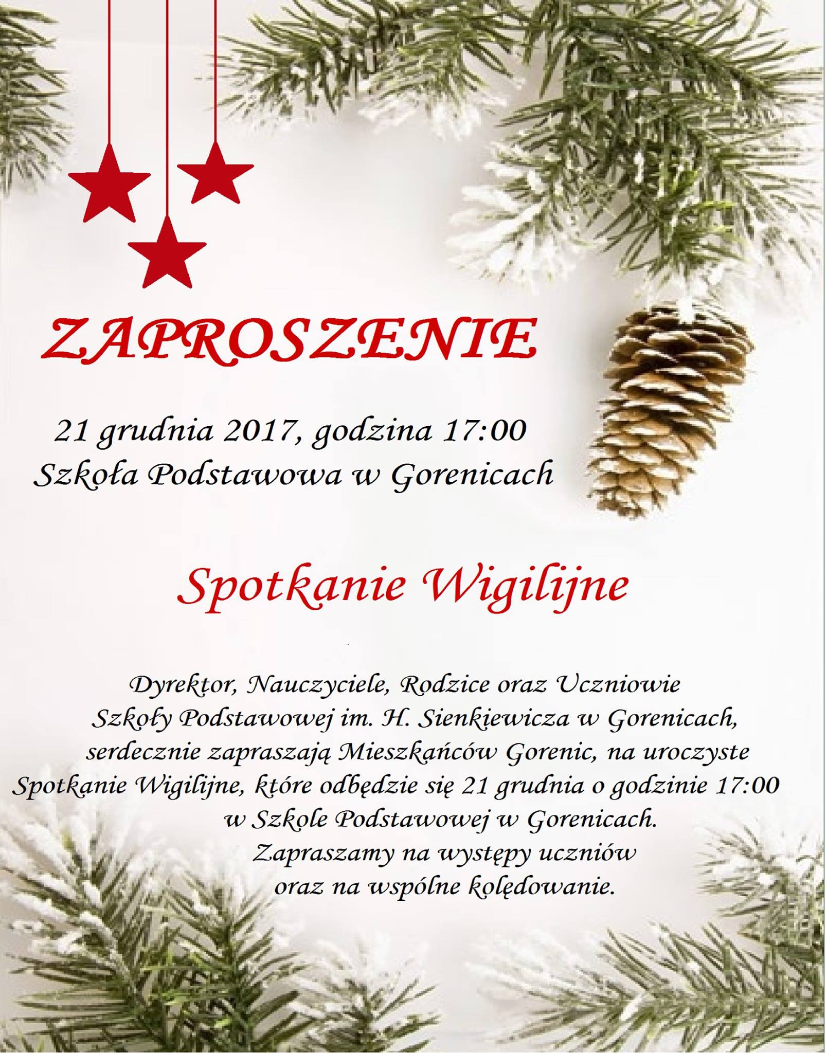 ZAPROSZENIE NA SPOTKANIE WIGILIJNE.